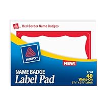 Avery Border Name Badge Label Pad, Red, 40 Labels (45143)