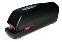 Experience the speed and convenience of electric stapling in a flexible and compactly-designed space-saver. Staples up to 20 sheets. Motor-driven engineering delivers reliable long-term performance. Powered by an AC adapter or AA alkaline batteries for go-anywhere versatility. Precision adjustment guide for exceptional control. Easy grip form. Plastic and metal construction. Throat depth adjusts from 1/4 in to 1 1/2 in. Front loads a full strip (210) of staples. Ten-foot cord. Black. Package includes AC adapter. Manufacturer's limited two-year warranty. All sheet capacities are based on 20-lb. bond.